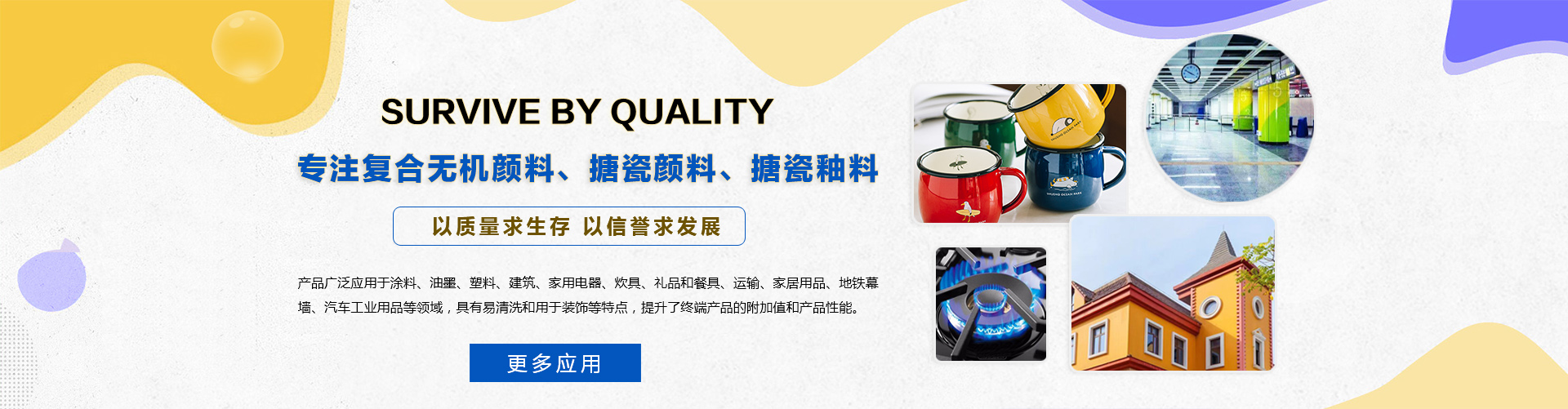 主要適用于日用搪瓷、工業(yè)搪瓷、搪瓷標(biāo)牌、搪瓷貼花紙、搪玻璃、建筑琺瑯板、日用玻璃、粉末涂料等行業(yè)。產(chǎn)品性能好、品種齊全......